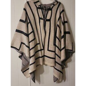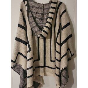 Elan OS Black And Grey Hooded Poncho Kimono 54" Wide