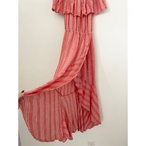 Elan Off Shoulder Maxi Dress Women Medium Pink Boho Ruffle Slit Vacation Casual