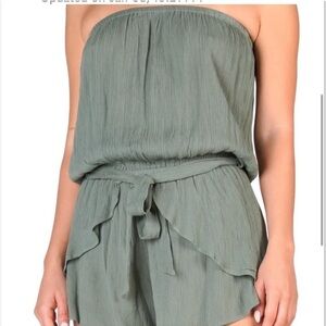 Elan Olive Strapless Ruffled Romper NWT