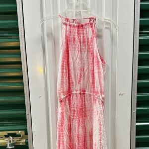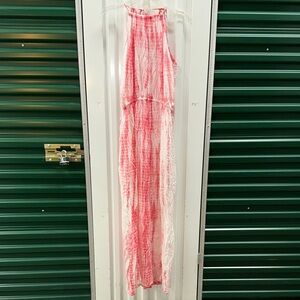 Chic maxi dress by Elan. Features a sleeveless design with a vibrant pattern. Ideal for casual wear. 2 splits in front …box 2