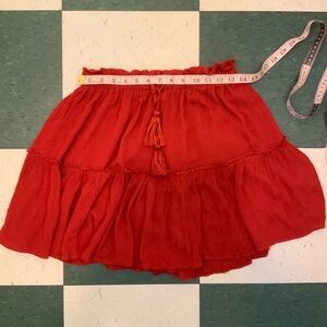 Adorable ruffle skirt. Versatile & staple for summer. Color is a rusty red.