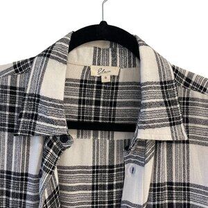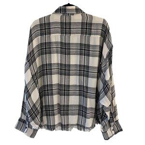 Elan Size S Metallic Plaid Black White Button Down Top Shirt Raw Hem Relaxed Fit