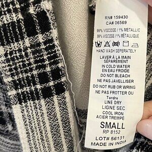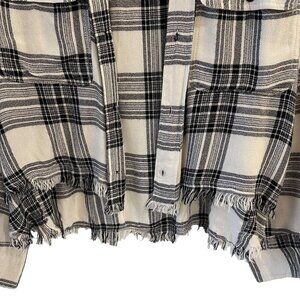 Elan Size S Metallic Plaid Black White Button Down Top Shirt Raw Hem
