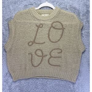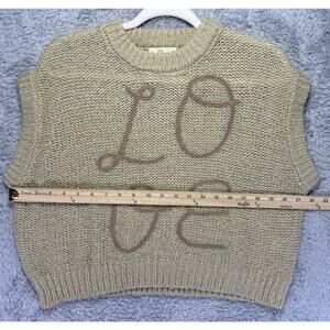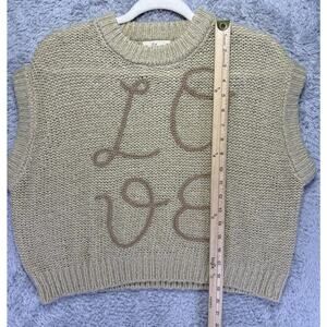 Elan Small Love Sleeveless Sweater Beige Embroidered Cropped