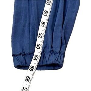 Elan Spaghetti Strap Crossover V-Neck Jogger Belted Jumpsuit Blue Small