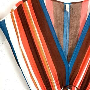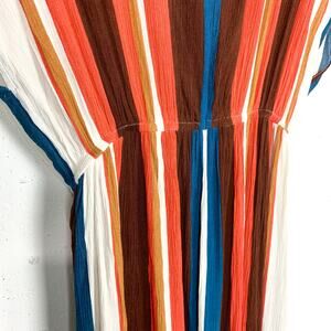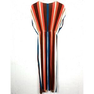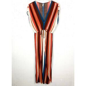 Elan Striped Maxi Cover Up Dress Plunging Bodice Slit Skirt Stripe Size Small