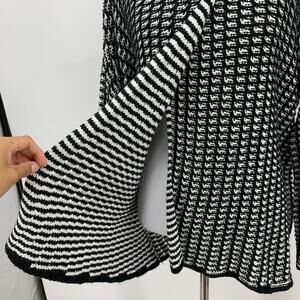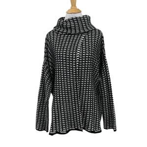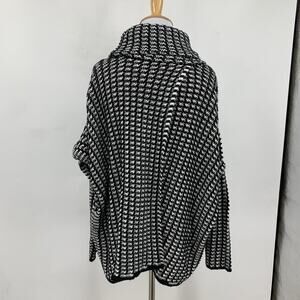 Elan Sweater Womens OS One Size Black White Knit Crochet Funnel Neck Oversized