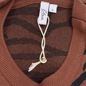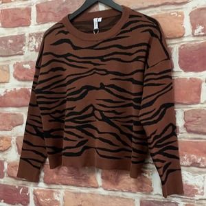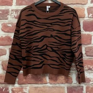 Elan Sweater Women's Small Brown Black Zebra Abstract Animal Print Knit Sweater