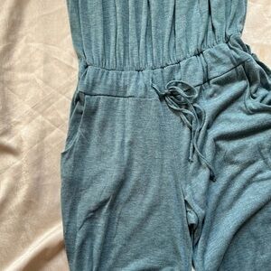 Elan Teal Strapless Jumpsuit with Smocked Bodice