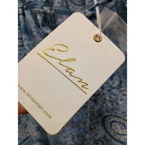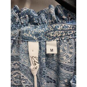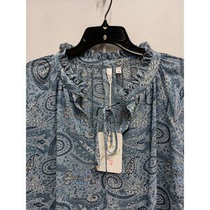 Elan Womens BOHO Cottagecore Blouse Top Medium Blue Paisley Chiffon Ruffle NWT