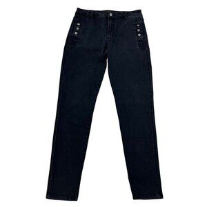 Elan Women’s Button Accent Skinny Jeans Faded Black Size Medium