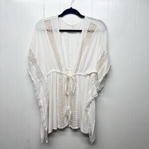 Elan Women's Embroidered Gauzy Bohemian Tunic Top Size Small Oversized Beachy