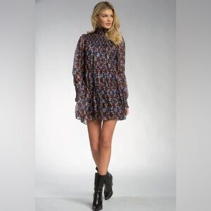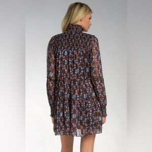 Elan Women's Mock Neck Tiered Dress Brown Size Small