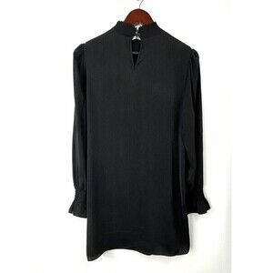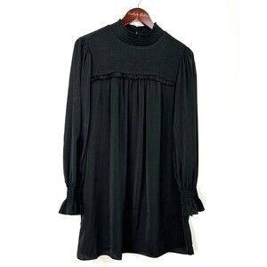 Elan Womens Size M Black Mini Dress Mock Neck Sheer Unlined Ruffle Smocked U4