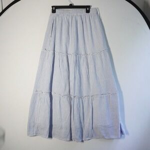 Elan Women's Striped Maxi Skirt Tiered Ruffle Hem Elastic Waist L Cottage Praire