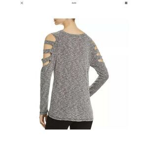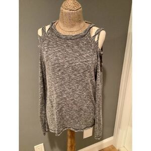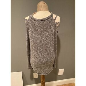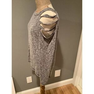 Elan Womens Gray Cut-Out LS Pullover Top Shirt Large slash sleeve