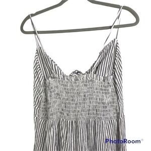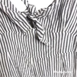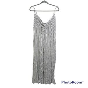 Elan gray and white striped jumpsuit tie front bust size L Nwt