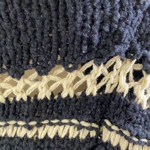 Great knitted sweater. Reads navy blue and black depending on the light. And cream. NWT 100% cotton.