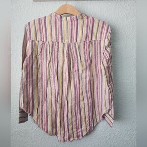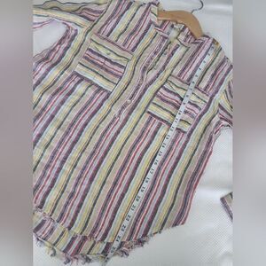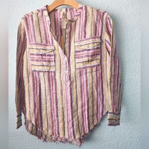 Elan linen coastal top blouse stripe new raw hem