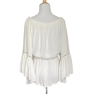 Elan off Shoulder Radder Ruffle Crochet Trim Romper