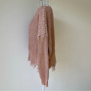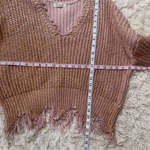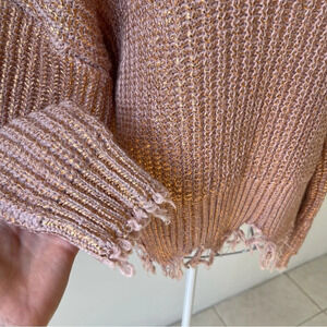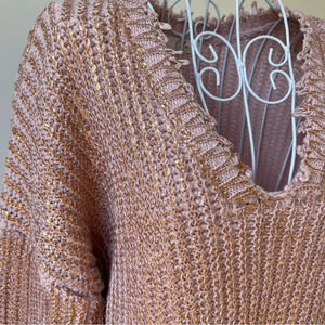 Elan shimmery pullover sweater raw edges V neck oversized rose gold size S