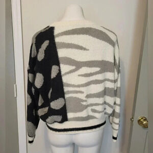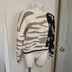Elan Animal Print Colorblock Mixed Print Sweater(M)