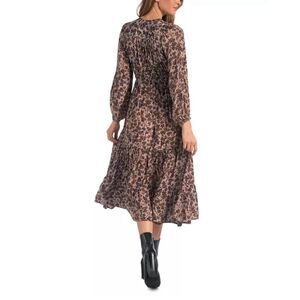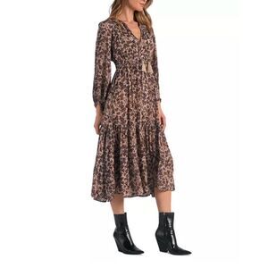 Elan Floral Button Down Boho Midi Dress Brown, Beige Size M