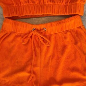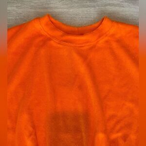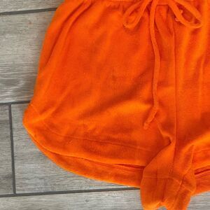 Bright Tangerine Terry fabric with Elan label. Stylish and bold.