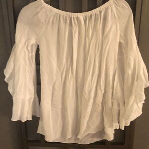 Elan White off the shoulder ruffle sleeve rayon blouse size S