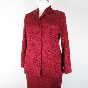 Elana By Tanner Plus Size Red Black Floral Jacquard Skirt Suit Size 14 Formal