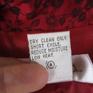 Beautiful Elana by Tanner women's plus size black red floral jacquard skirt suit in excellent used condition. Acetate nylon blend. Invisible button closure. Fully lined. Size 14. Perfect for the workplace or any occasion!