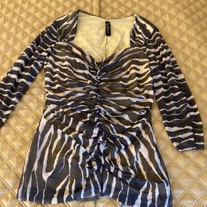 Elana Kattan Zebra Print Tulle Top with Sweetheart Neckline & Ruched front.