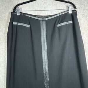Elana Maxi Skirt Womens Size 14 Black Wool Leather Trim Pockets Side Zip Casual Mob Wives Business Career