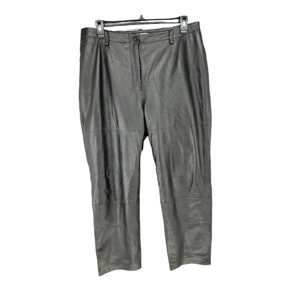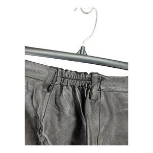 Elana by Tanner Black Leather Pants Trousers Size 18 Lined Straight Leg 37x29 High Waisted Rise 12.5 in Stretch Waist Biker