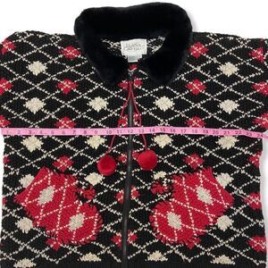 Eland Carello Argyle Style Print Ugly Christmas Sweater Zip Front Cardigan