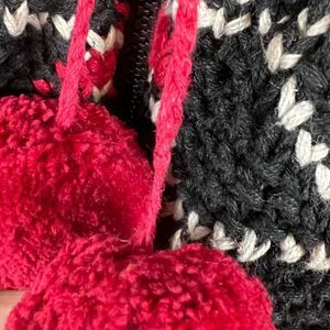 Puff balls on zipper pull has one side that has a thinning thread as shown in photos