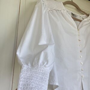 Elastic Cuff Detail Button Front Cotton Blouse By A New Day, Women’s Size XS, Slightly Boxy Fit, Pit To Pit 19”, Shoulder To Hem 20”, Excellent Condition