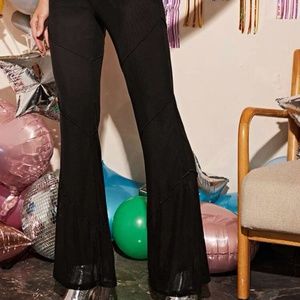 Elastic Waist Mesh-Overlay Flare Pants