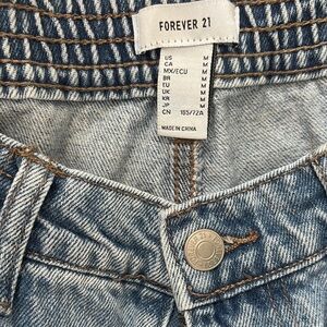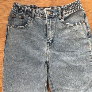 Elastic Waist Mom Jeans High Rise Denim Pants Light Wash