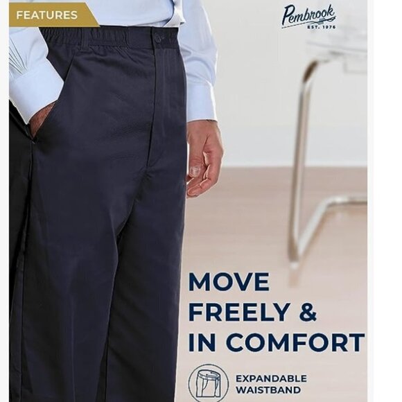 Easy to Put on and Wear - The Pembrook elastic waist pants men features a full elastic waistband, a zipper and button. The relaxed fit makes these the perfect men's leisure pants elastic waist with fly. The features also make them suitable for seniors and elderly that may need adaptive clothing that can adjust to their need for comfort.