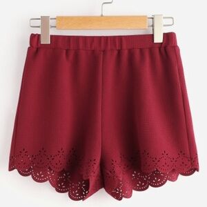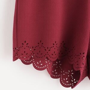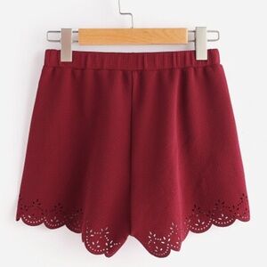 These Elastic Waist Textured Laser Cut Scallop Shorts are perfect for spring and summer! They’re classy but comfortable. 95% Polyester, 5% Spandex. Please see last picture for sizing.