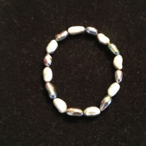 This bracelet is elasticized and stretches to fit through a 7 1/2” wrist. It features alternating platinum/silver and black free form cultured pearls. $8 each of bundle 3 of same price for $15 to save.