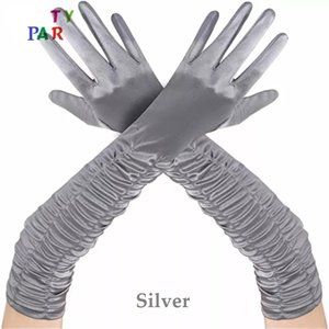 Elbow Length Long Satin Gloves Shirred Elbow Gloves