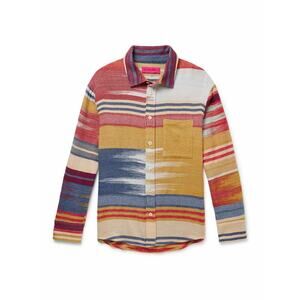 Elder Statesman Mens Cashmere Blanket Stripe Over Shirt in Sahara Stripe L