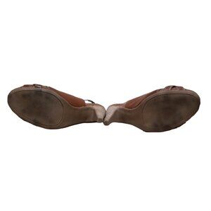 This is pair of Eldita's Lace Up Open-Toe Gladiator Pumps with 4" Heels in a tan stiletto Sz 8.5 M Womens.
