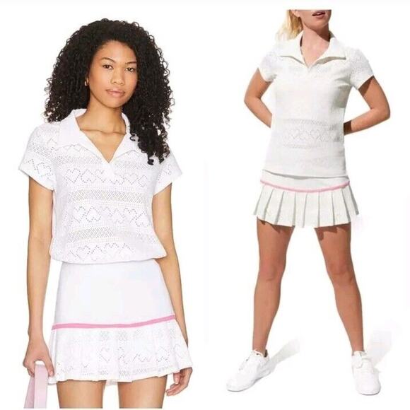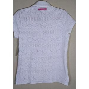 EleVen by Venus Williams Devotion Polo Shirt White Heart Eyelet Country Club Med