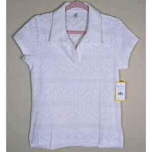 Elevate your tennis game or workout with this stylish and breathable Eyelet Knit Polo Shirt from Eleven by Venus Williams. Size Medium.