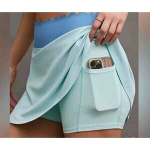 A scalloped waistband brings comfort and intrigue to this four-way stretch tennis skort equipped with moisture wicking technology and convenient ball pockets. 4-way stretch.
