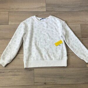 Chic white crewneck sweater by EleVen. Features subtle graphic design. Ideal for everyday style.