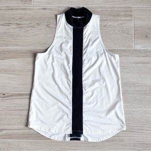 Eleven by Venus Williams White and Black High Neck Athletic Dri Fit Tank Top. Middle stripe is mesh.